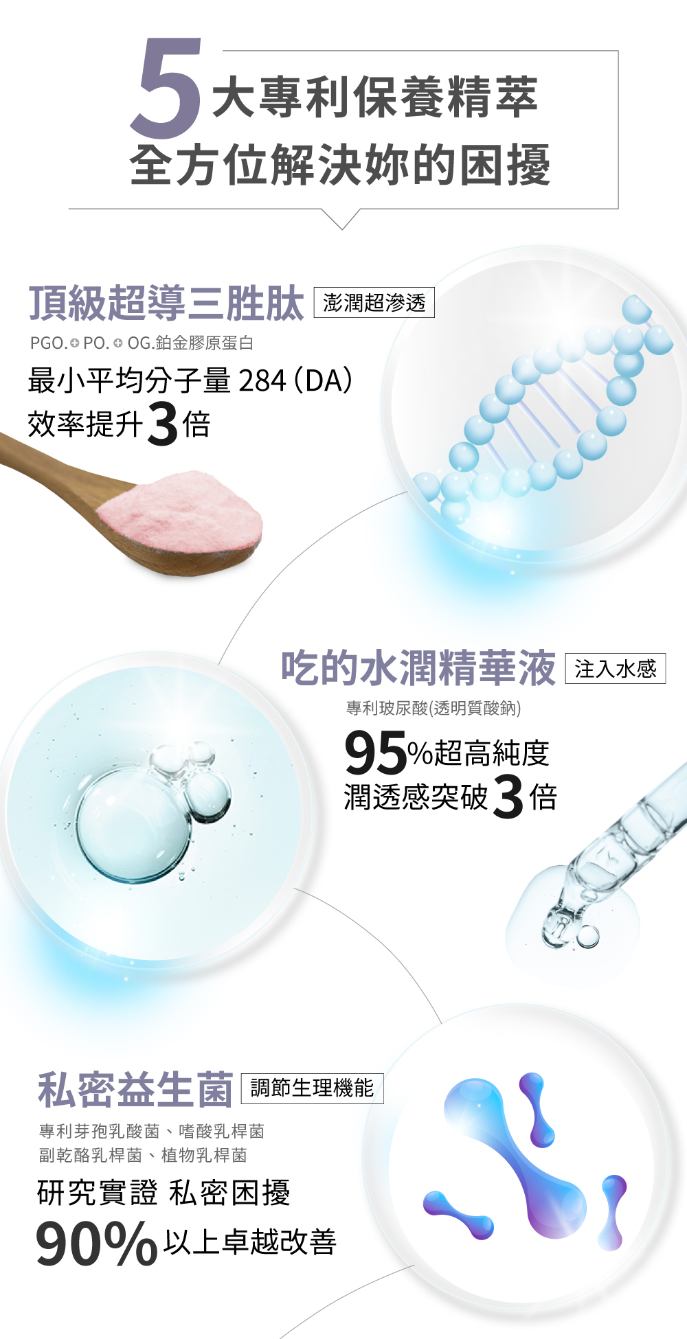 三胜肽鉑金膠原蛋白⊕專利玻尿酸⊕蔓越莓之王⊕私密專科益生菌