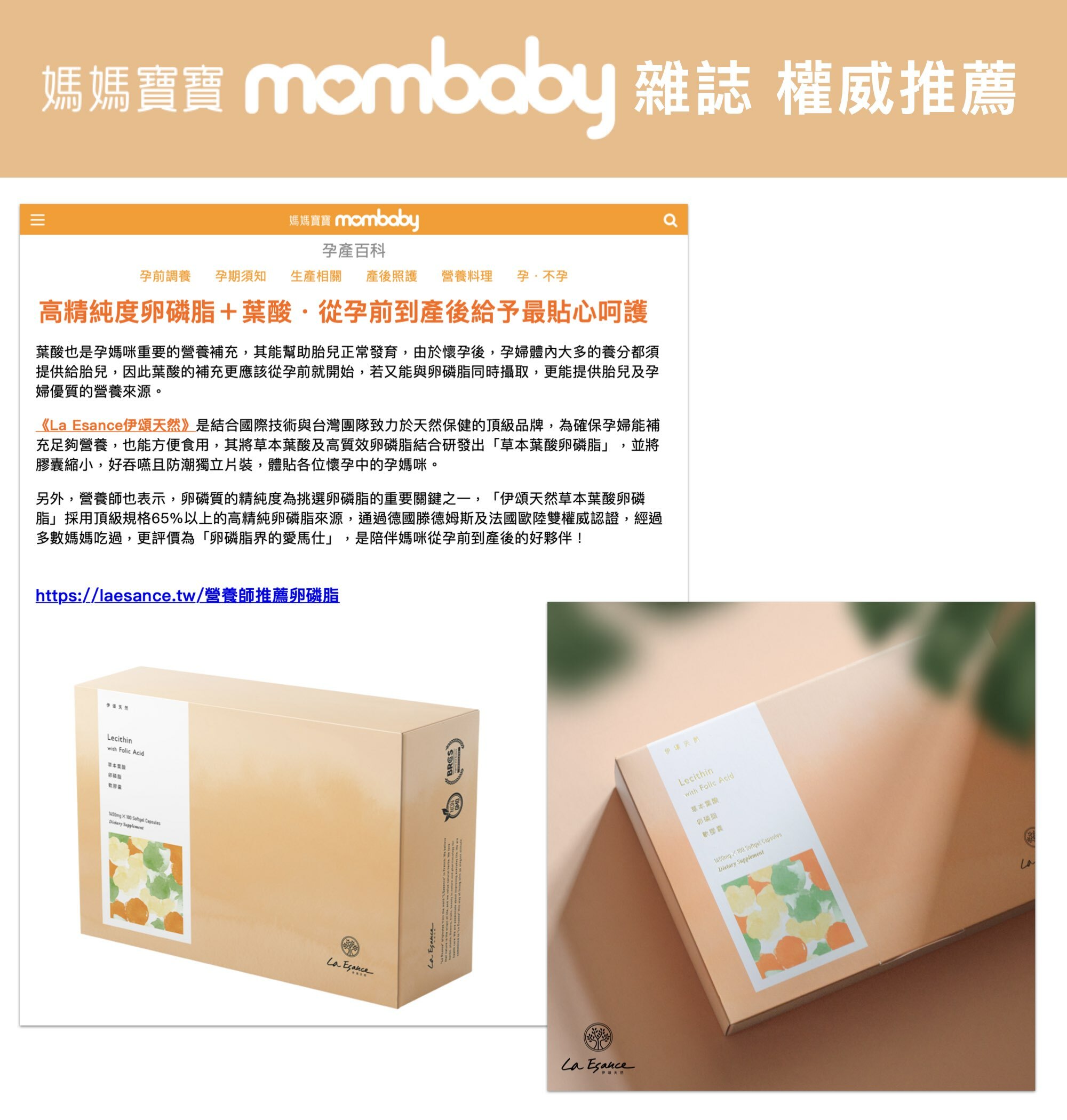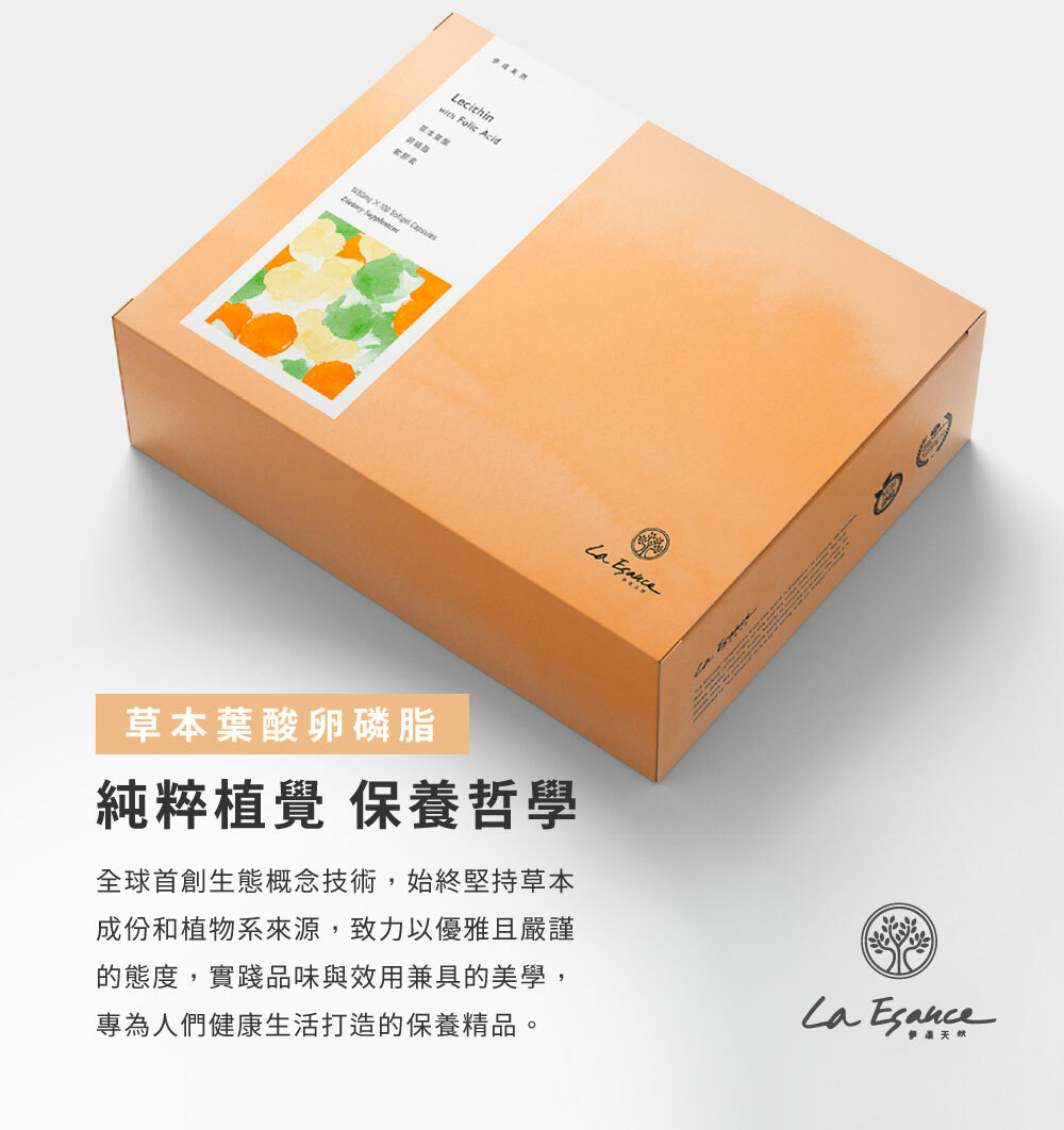La Esance精選從歐陸來源的卵磷脂精質提煉,以嚴謹的工法,淬鍊出精品層次的大豆植物力,蘊含非凡的高精純磷脂質。葉酸卵磷脂推薦提供:簡單而高效的孕期保養,採用頂規「磷脂質60%以上」的卵磷脂800mg搭配葉酸150mcg。